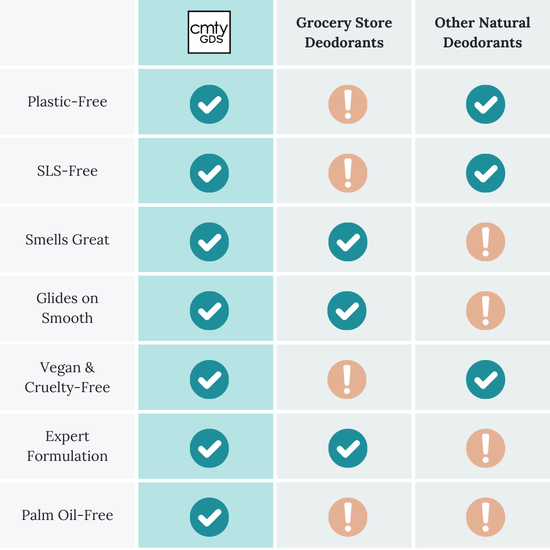 Introducing Community Goods Deodorant, in two nose-pleasing scents: Coconut Vanilla and Citrus & Cedar. With a smooth application that hydrates skin while neutralizing odor-causing bacteria, you'll notice the difference.